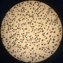 圖片為100倍光學(xué)顯微鏡下灰鐵試棒和球鐵試棒的石墨形態(tài):